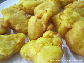 Prawn fritters or cucur udang is my all time favorite fritter though getting it right is always a case of trial and error whenever a long time has lapsed since I last fried a batch. Since, we have some fresh prawns today, I decided to celebrate the turning on of my Gas Malaysia with some cucur udang for breakfast :)